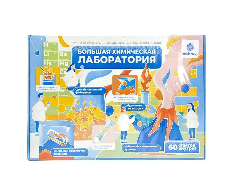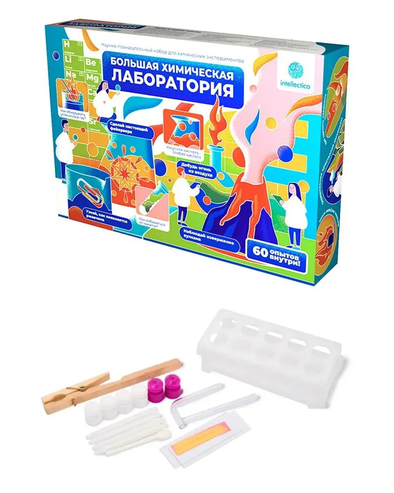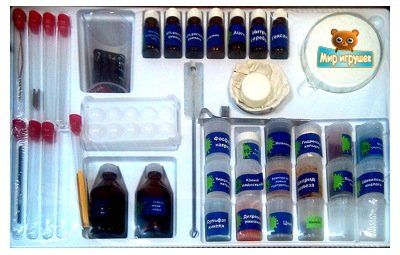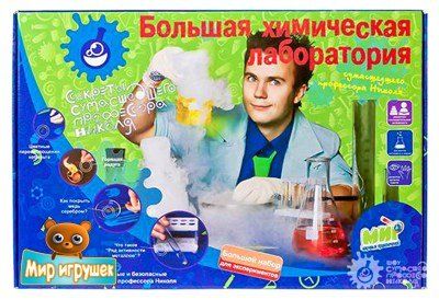 В набор "Большая химическая лаборатория" входят все опыты, которые включены в малые наборы. Тут есть и опыты с огнем, и экперименты с водой, и исследование металлов, и многое другое. Набор понравится даже самым искушенным любителям химии.