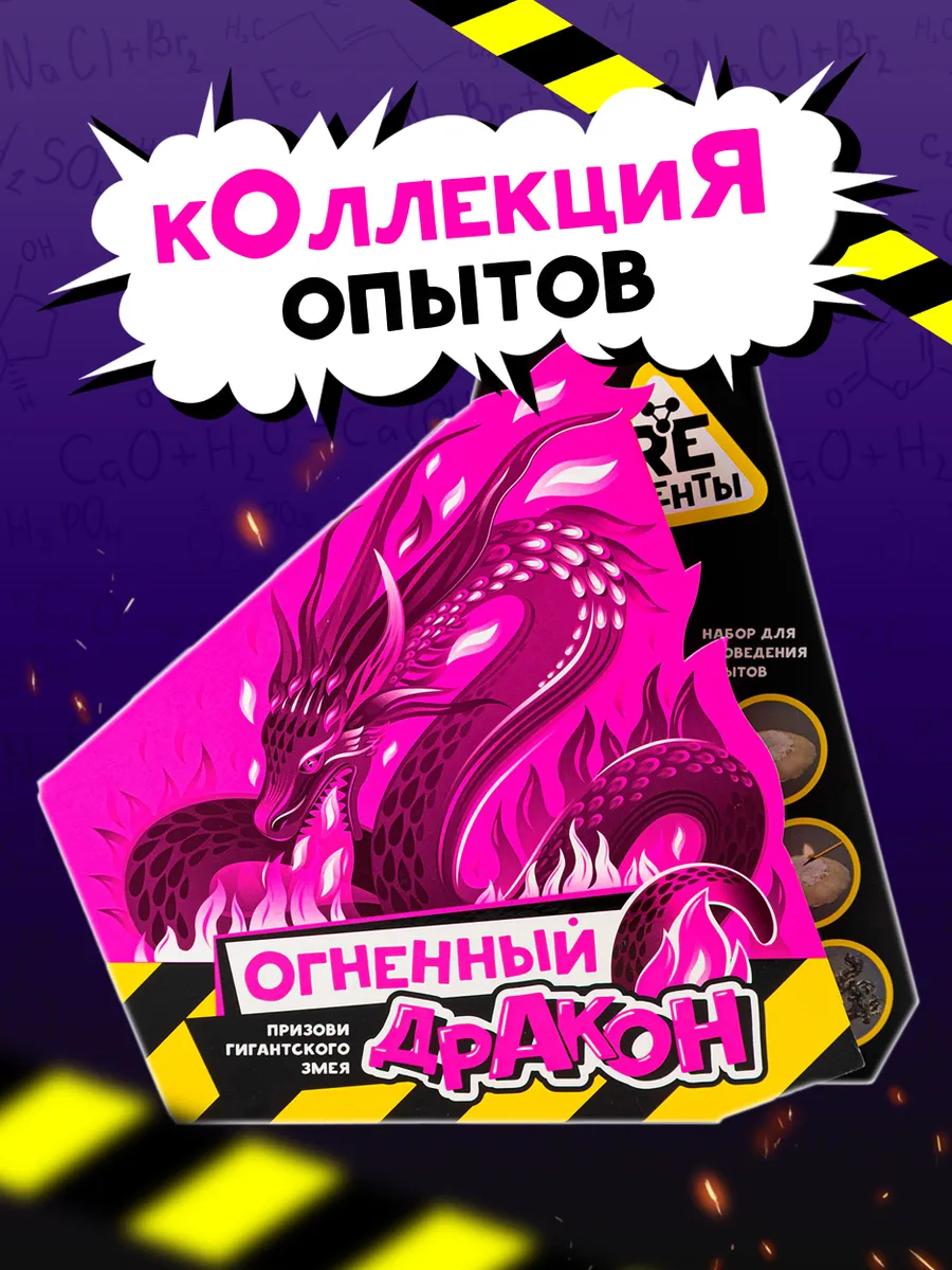 Этот набор опытов позволит ребенку самому побыть немного создателем дракона! Наблюдайте, как растут — словно сами собой — ваши «огненные дракончики». А после завершения научного опыта можно вернуться к теоретической части. В ней скрывается ответ на вопрос, который обычно волнует любознательных экспериментаторов, — «Как же получается дракон и почему он растет?».