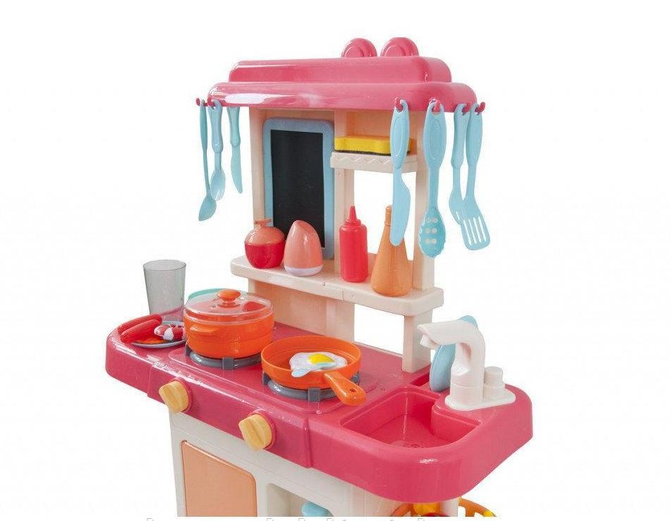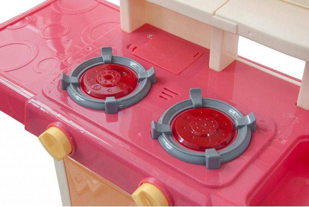 Детская игровая кухня нежно-розовой расцветки - с эффектом «холодного пара», холодильником и возможностью использования настоящей водички!