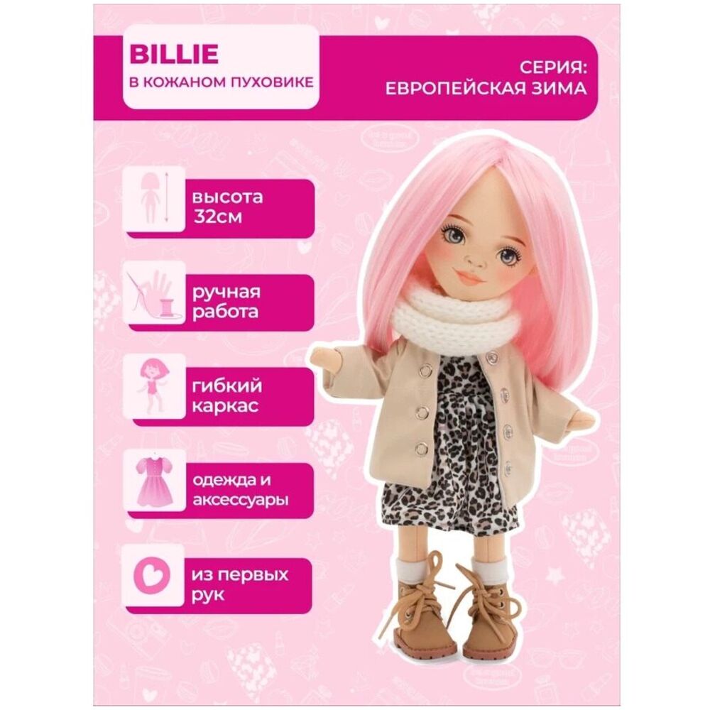 Мягкая игрушка - Кукла Billie в кожаном пуховике 32 см, Orange SS06-12