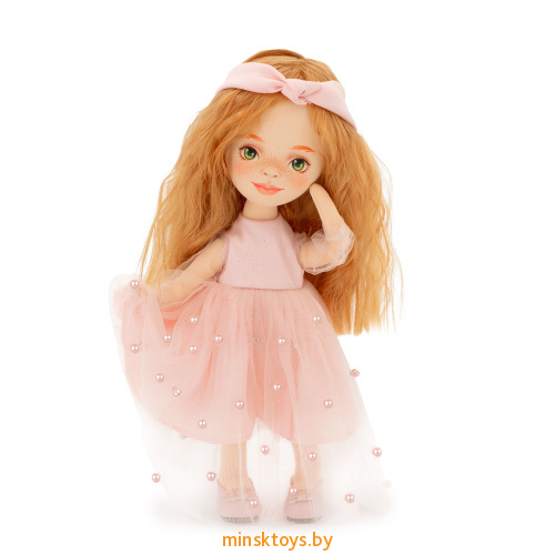 Определенно, некоторые игрушки Оранж поцелованы Солнцем! В зеленых глазах Sunny пляшут лукавые огоньки, рыжие волосы пронизаны лучиками света, а текстильное тельце словно лучится теплом. Прелестная, как интерьерная статуэтка, куколка для девочки разовьет у своей хозяйки чувство прекрасного, научит основам заботы о ком-то и сделает любую игру вдвое интереснее. Ни одной малышке не устоять перед куклой Оранж Тойс, облаченной в воздушное розовое платье с мерцающими бусинками и элегантные туфли с пряжками-бантами!