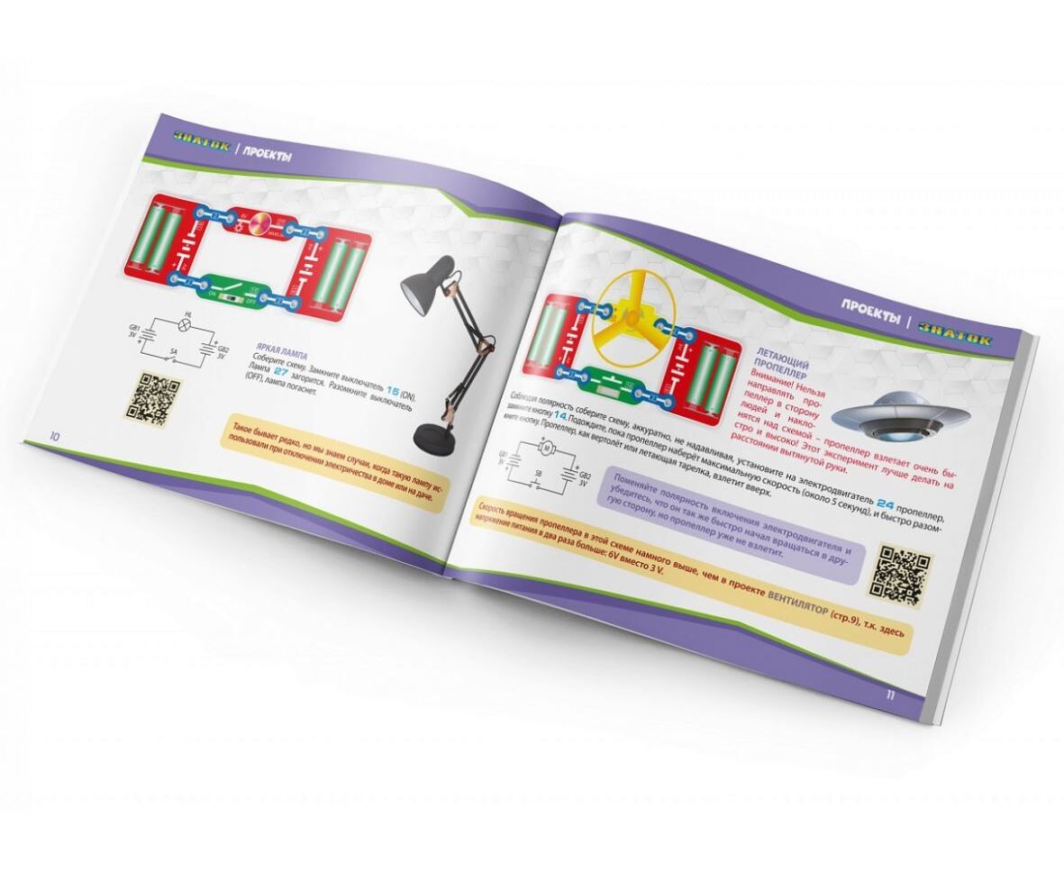 В комплектацию данного набора входит «Руководство пользователя» и детали, необходимые для выполнения предложенных в руководстве проектов. Руководство с описанием схем располагается в коробке под прозрачной монтажной платой. Нижняя часть коробки вместе с деталями и книгой запечатана в полиэтиленовую плёнку.