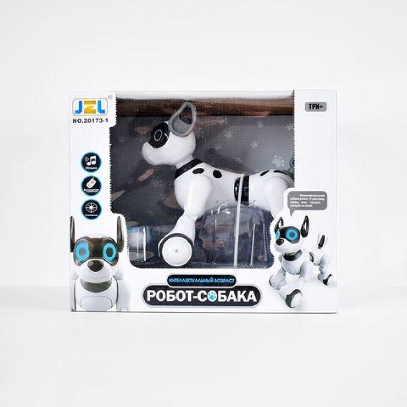 Интерактивная игрушка Собачка 20173 - это уникальный радиоуправляемый робот, который имеет реалистичную внешность собаки, может показывать различные эмоции и издавать звуки. Собака-робот любит играть и слушается своего хозяина — выполняет команды с пульта: весело лает, резво бегает, переворачивается и встает, ложится, делает выпады вперед и даже шкодит.
