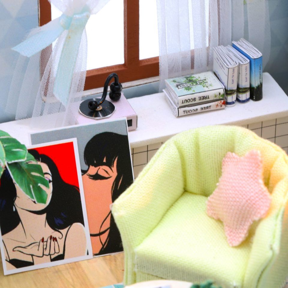 Румбокс Diy House "В стиле "Ретро" - это конструктор-миниатюра жилой комнаты в американском стиле 70-х годов.