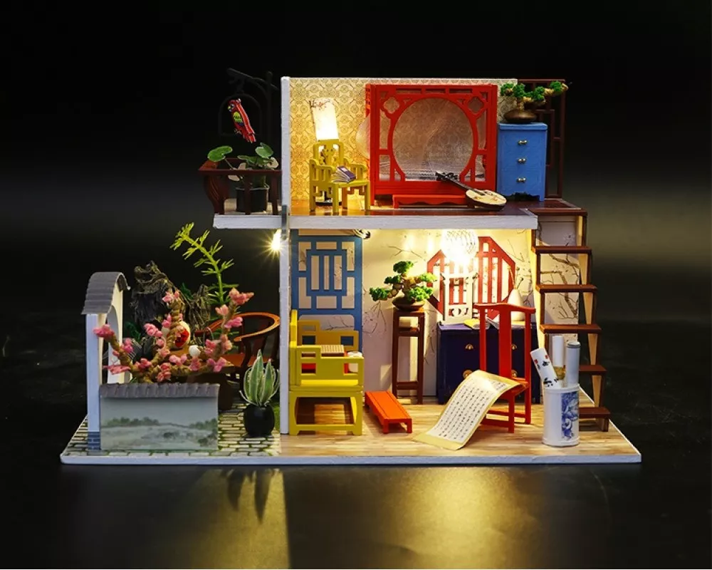 Дело тонкое Очень восточный интерьер. Есть, предположительно, жуань - восточный струнный инструмент, бонсай, сакура... ну и в целом атмосфера, вот словами не описать, но очень хорошо чувствуется. Деревянные ставни на стенах (как-то это наверное называется), свитки, изящество деталей. Почувствуйте весь лоск Востока! Комната-коробка? Это плохо? Нет, это не про очень маленькие квартиры - это такой набор для творчества. Придется знатно потрудиться, но клей, ножницы и никакого мошенничества - и у вас получится настоящий домик в миниатюре. Они очень детальные - внутри такого интерьерного конструктора есть всякие горшки с цветами, картины и даже брошенные книги. Все это создает ощущение вполне реалистичного жилья. Работа по его сборке довольно кропотливая, но результат однозначно того стоит.
