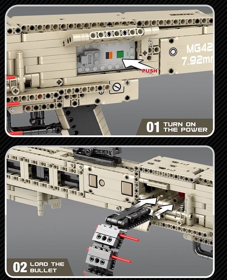 Этот уникальный конструктор представляет собой точную копию легендарного немецкого пулемета MG-42 времен Второй мировой войны, который советские солдаты прозвали "косторезом" за его высокую скорострельность. Набор разработан для ценителей военной истории и юных конструкторов, желающих освоить принципы работы стрелкового оружия.