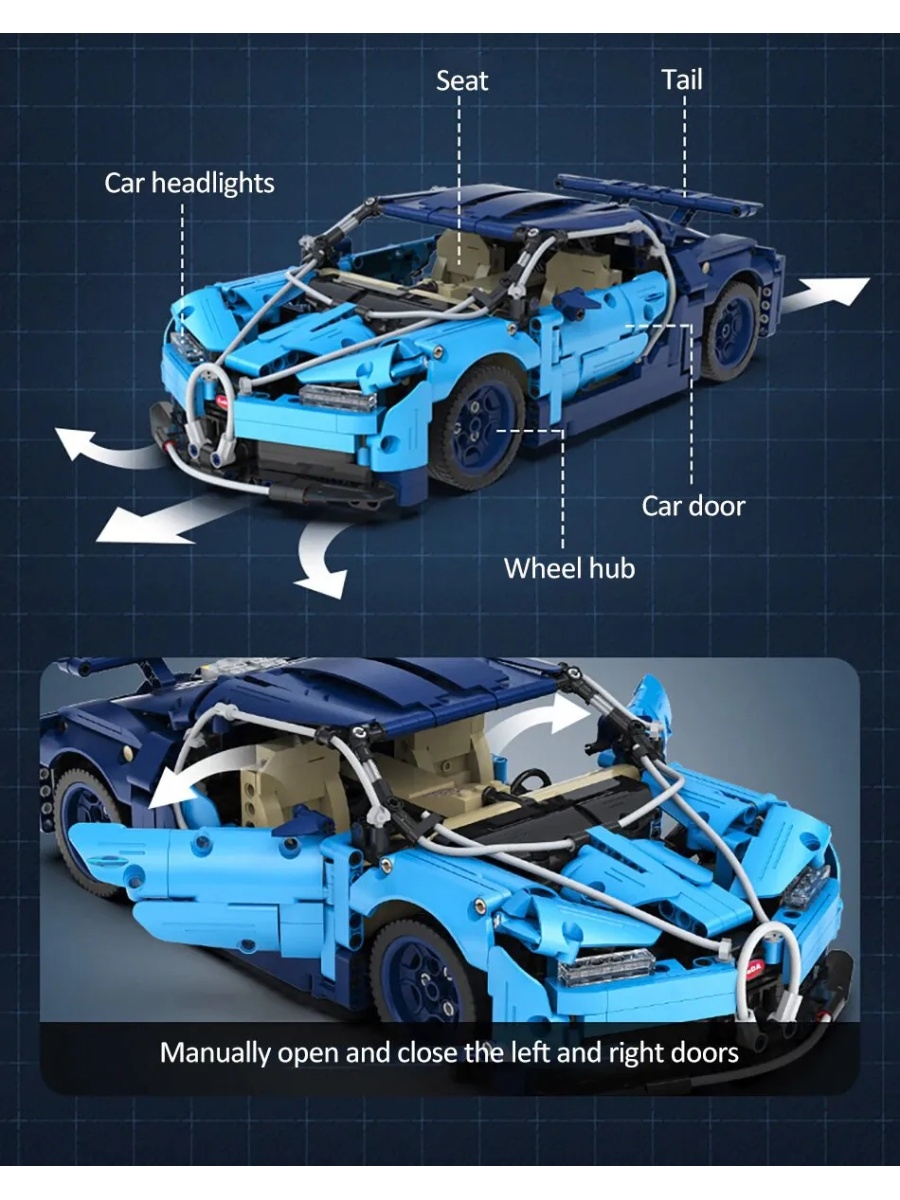 Конструктор на пульте управления машина - Bugatti Chiron Blue Phantom, CaDa C61028W