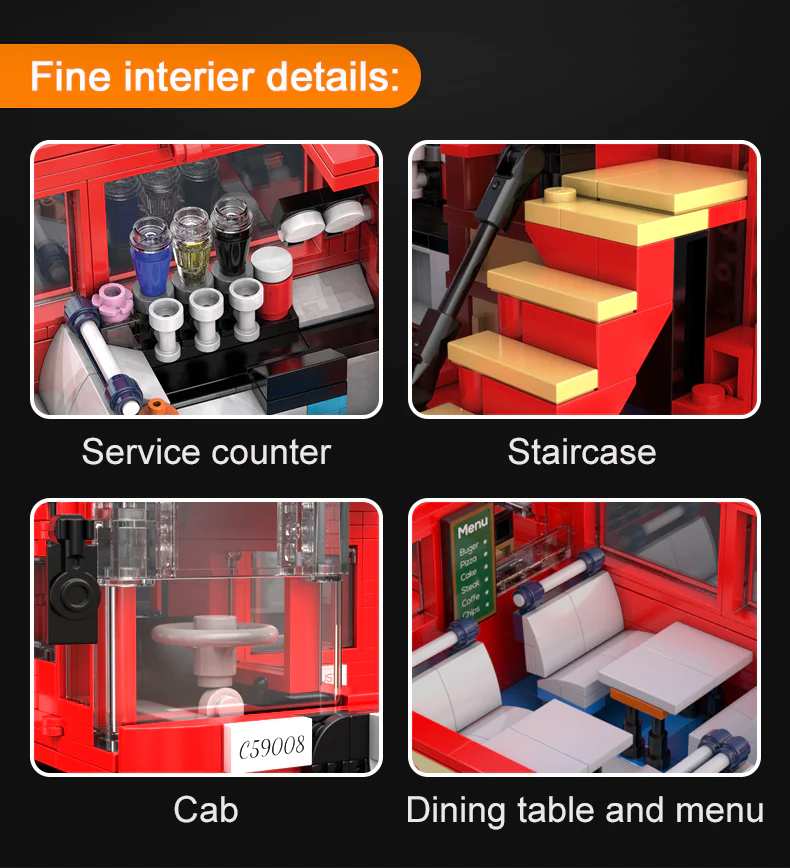 Конструктор CADA Лондонский винтажный туристический автобус" – уникальный набор для создания детализированной модели легендарного автобуса из 1770 деталей. Модель обладает модульной структурой, открывающейся дверью и внутренней подсветкой, обеспечивающей потрясающую детализацию внутреннего интерьера.