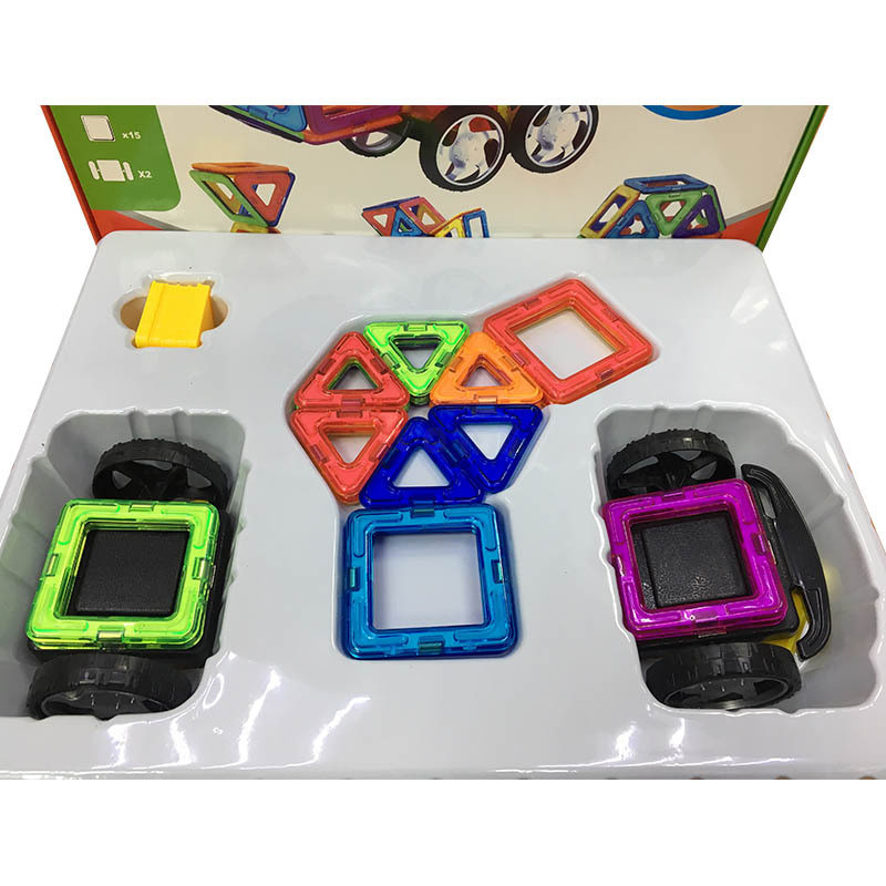 Данная развивающая игрушка состоит из геометрических фигур, среди которых квадраты, треугольники, трапеции и так далее с внешней оболочкой из высококачественного пластика, каждая фигурка имеет своё яркий и приятный глазу цвет. Собранные ребёнком конструкции отлично держатся друг с другом благодаря магнитам расположенным внутри каждого элемента, давая возможность чаду и родителям оценить плоды трудов.