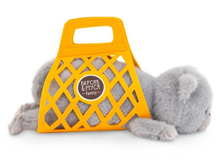 Игрушка мягкая - Кот Барсик в сумке серый 35 см., Orange B1002/35