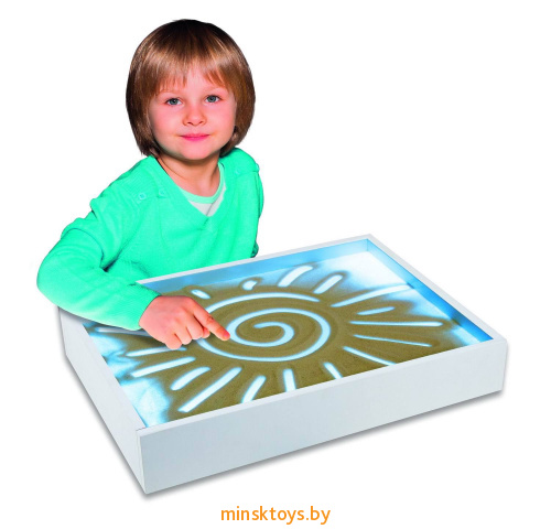 Совместно с песком Вы можете использовать любые пластиковые и деревянные фигурки, создавая и развивая различные истории. Стол в картонной упаковке.