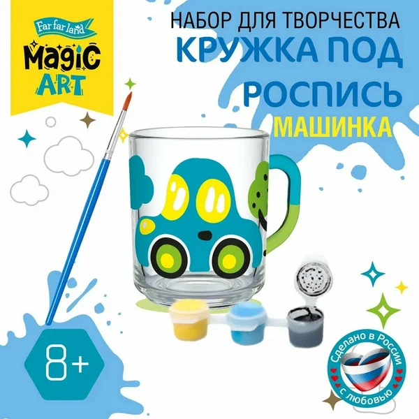 Набор для росписи «Узор» - это увлекательное занятие для детей и взрослых, которое позволит раскрыть творческий потенциал и создать уникальный предмет посуды. Окунитесь в мир волшебства: Станьте художником. Превратите обычную кружку в произведение искусства, используя краски и кисти. Добавьте свою фантазию и создайте неповторимый дизайн. Развивайте мелкую моторику. Роспись кружки тренирует координацию движений, ловкость рук и пространственное мышление. Погрузитесь в антистрес. Творческий процесс помогает расслабиться и снять напряжение. Создайте уникальный подарок. Расписанная вами кружка станет душевным и оригинальным подарком для близких и друзей. Преимущества: Легко и интересно: Процесс росписи не требует специальных навыков и подходит для людей любого возраста. Развивает творческие способности: Позволяет проявить фантазию, чувство цвета и композиции. Безопасные материалы: Все элементы набора нетоксичны и безопасны для детей. Универсальный подарок: Набор станет отличным подарком для детей, взрослых, любителей рисования и креатива.