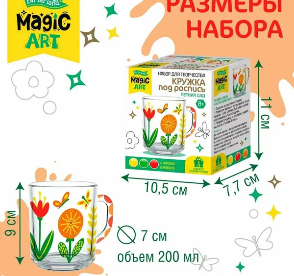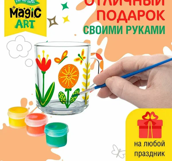 Роспись кружки — это отличный способ объединить семью за одним увлекательным занятием. С помощью различных трафаретов и красок, входящих в комплект, ваш ребенок сможет создать неповторимую композицию на стеклянной поверхности. Яркие цвета и оригинальные мотивы увлекут маленького художника, а совместная работа над проектом укрепит семейные связи и научит вниманию к деталям.