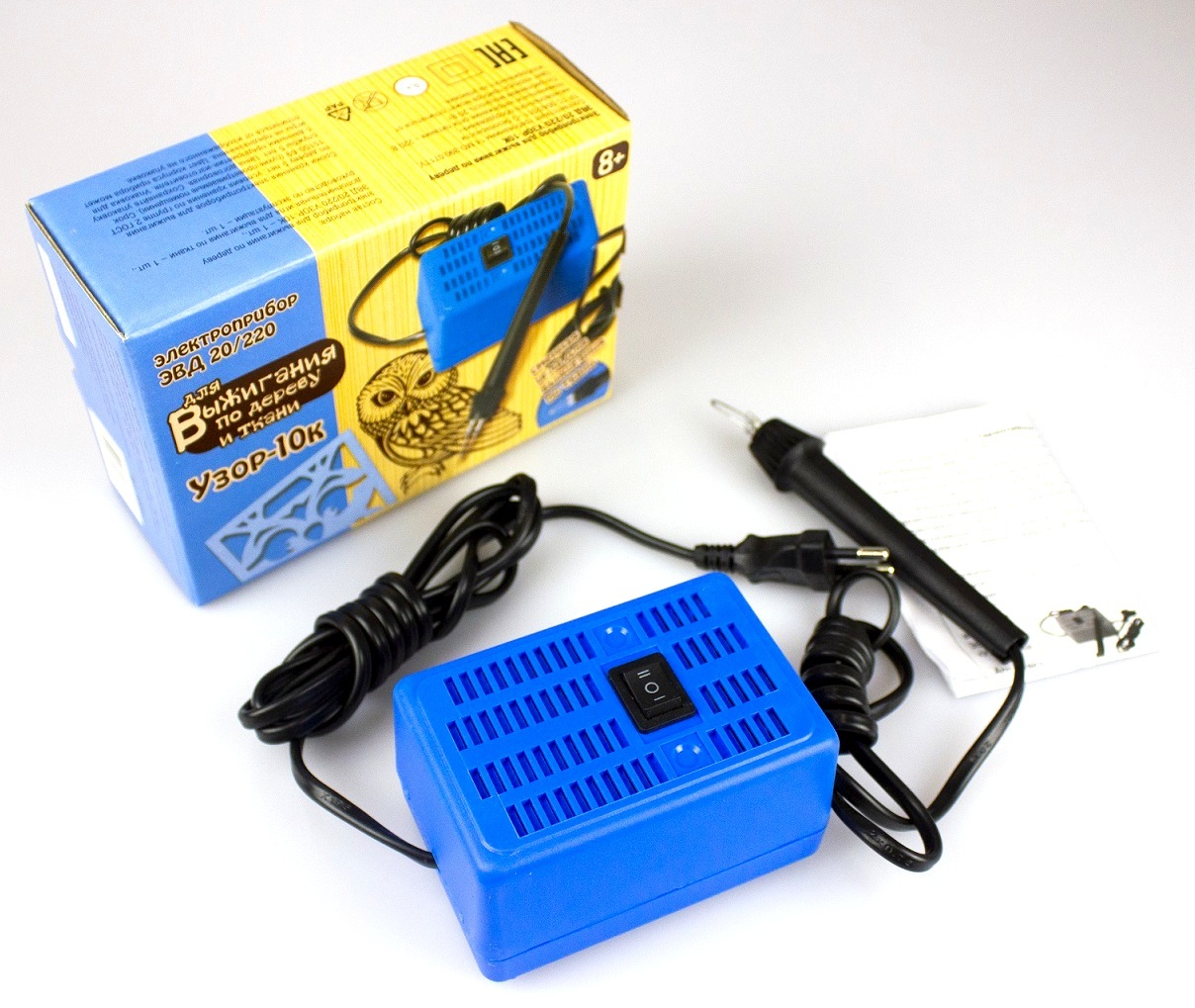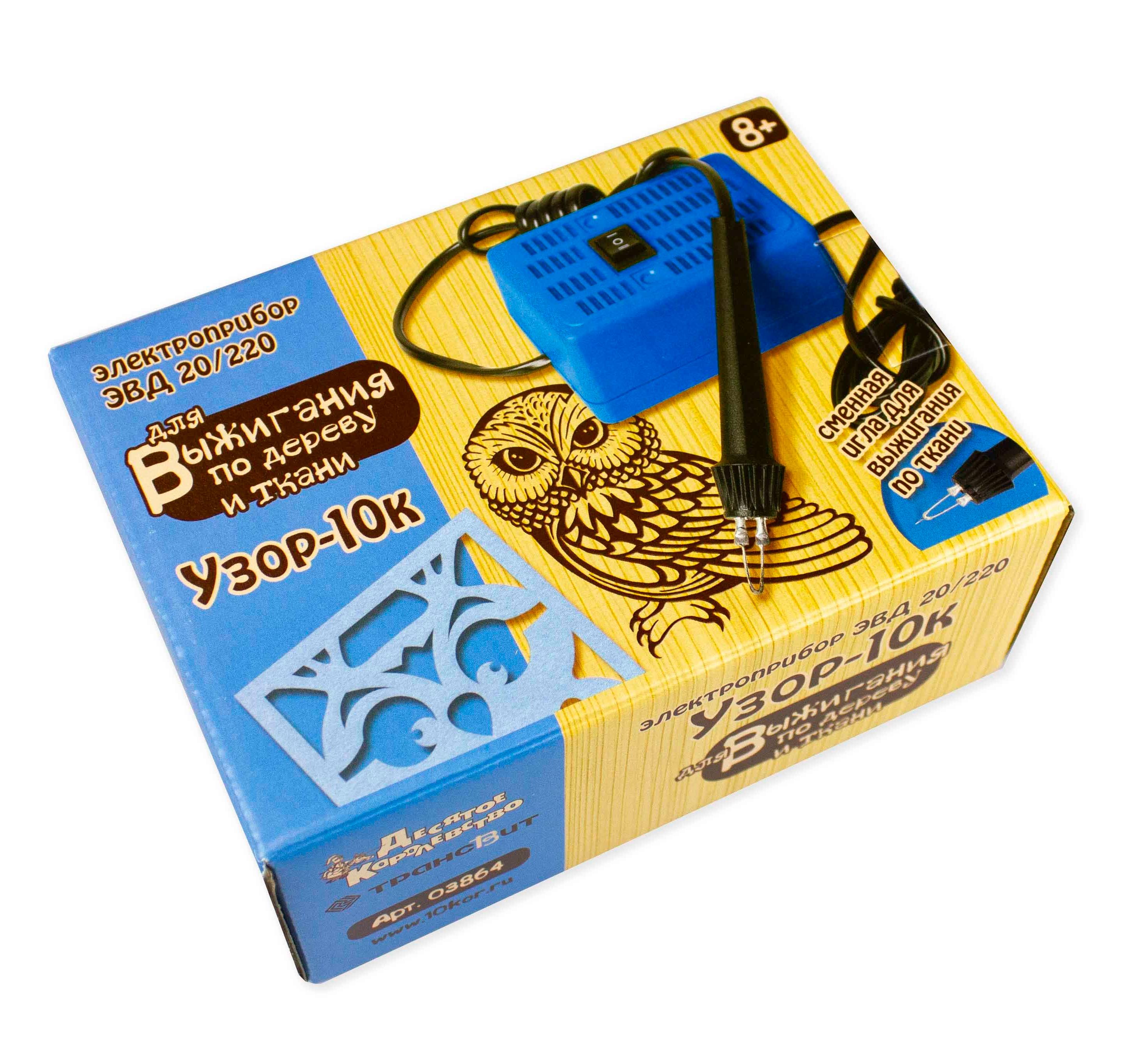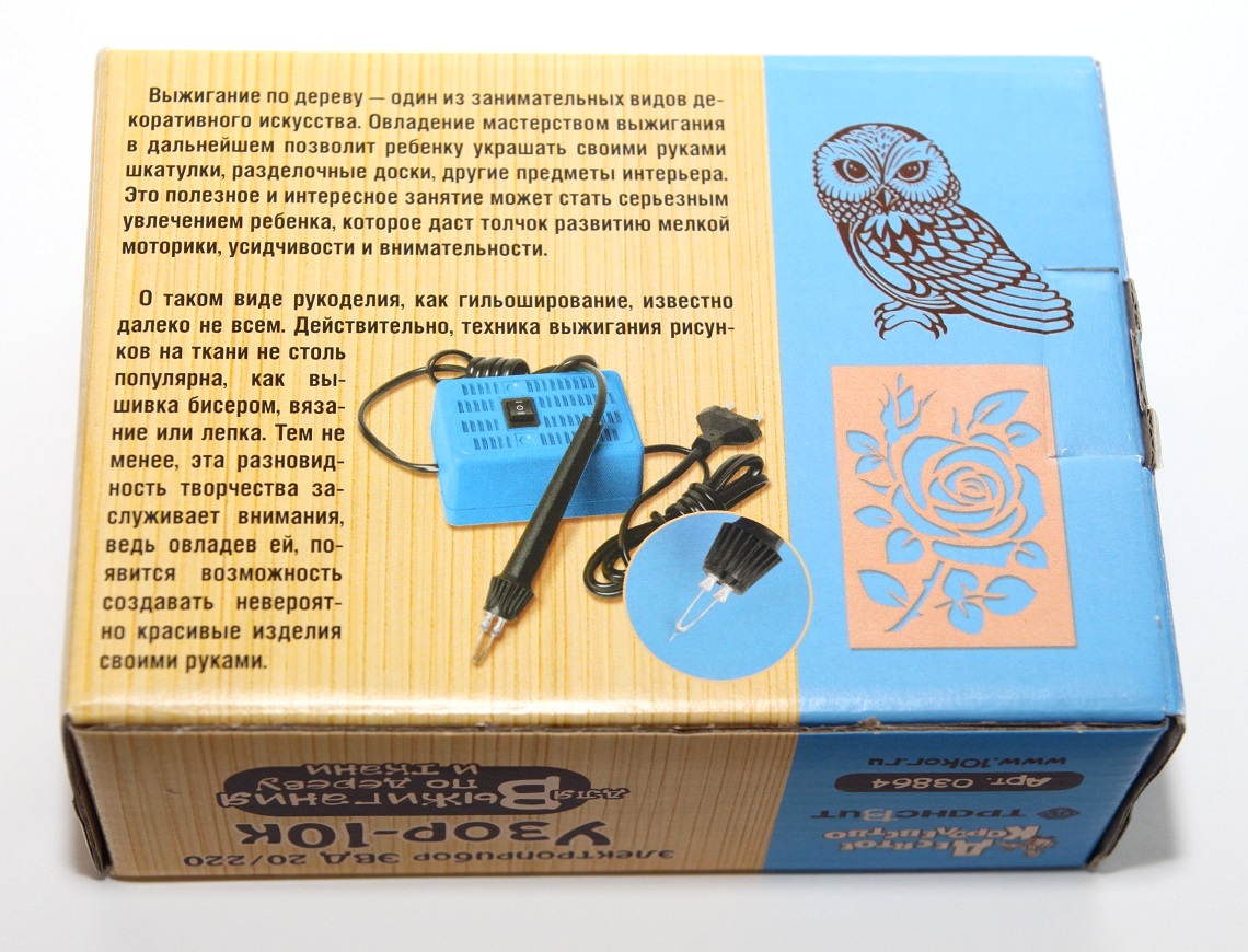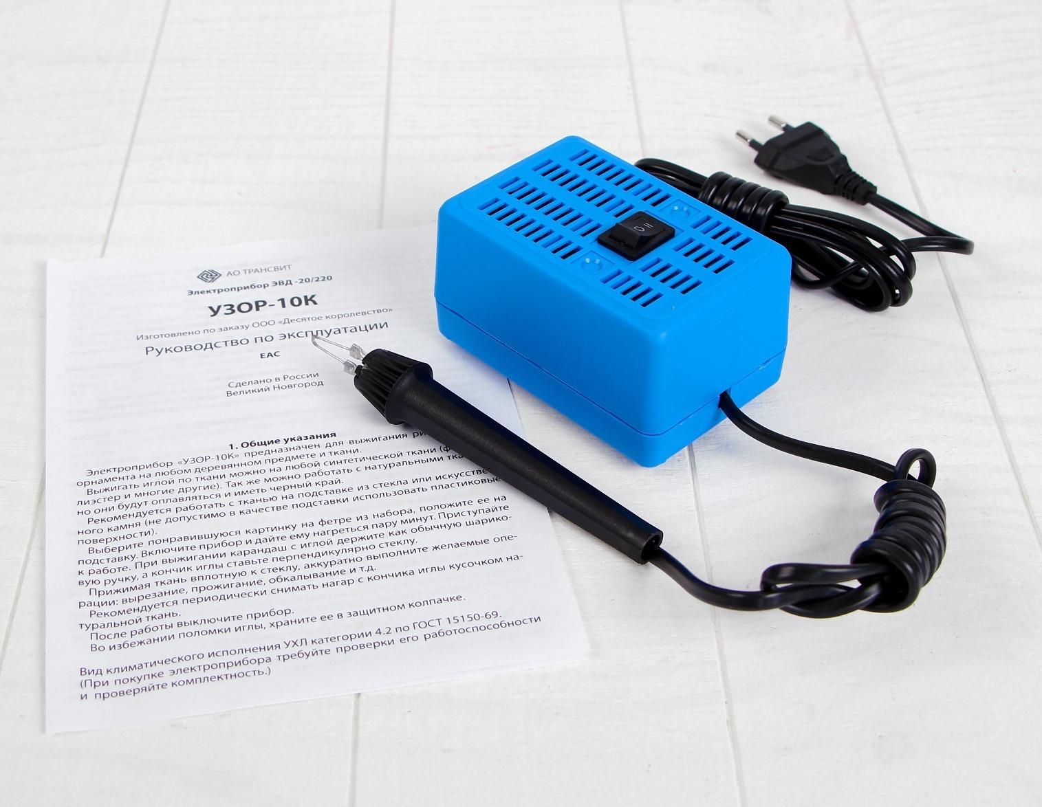 Освойте один из самых интересных и кропотливых видов декоративного искусства – выжигание по дереву и ткани с электроприбором «Узор 10К» от «Десятого королевства»!