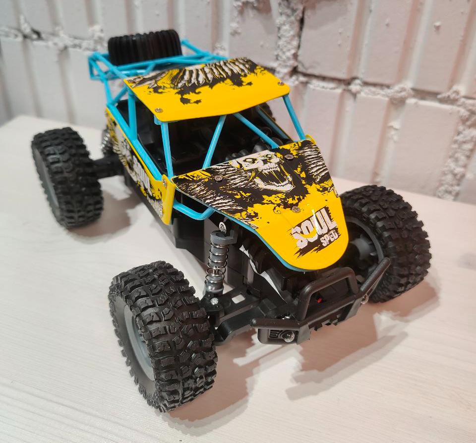 Высокоскоростная модель обладает мягкими, резиновыми колесами с протектором для хорошего сцепления с дорогой, а корпус, изготовленный из ударопрочного пластика способен выдержать любые препятствия без повреждений.