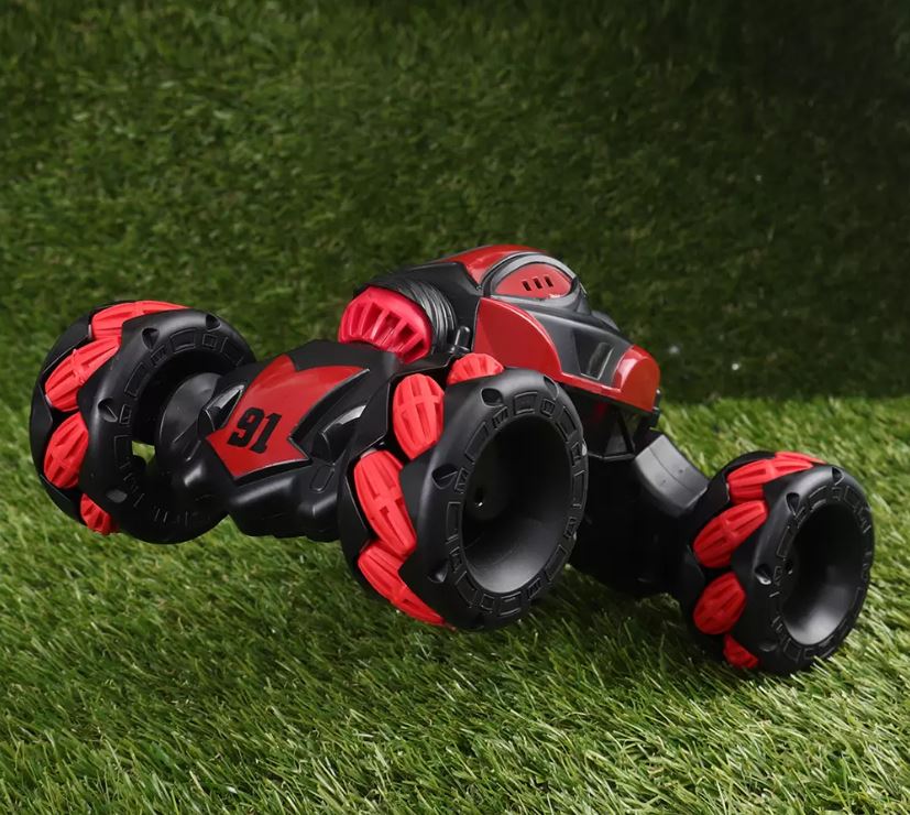 Радиоуправляемый внедорожник-перевертыш может ездить, крутиться на месте, переворачиваться и ехать дальше, приподниматься и даже танцевать. Но главная особенность заключается в управлении. Данной машинкой можно управлять жестами при помощи специального браслета, который входит в комплект. Управление сопровождается звуками работающего мотора, яркой подсветкой колес и музыкой.