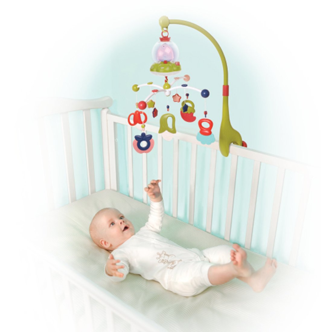 Мобиль устанавливается на детскую кроватку с помощью специального надёжного крепления.