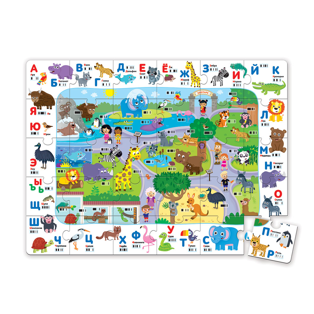В игровом наборе «Зооазбука Животные» ребенок найдет говорящего робота со сканером штрихкодов и пазл из 30 элементов.