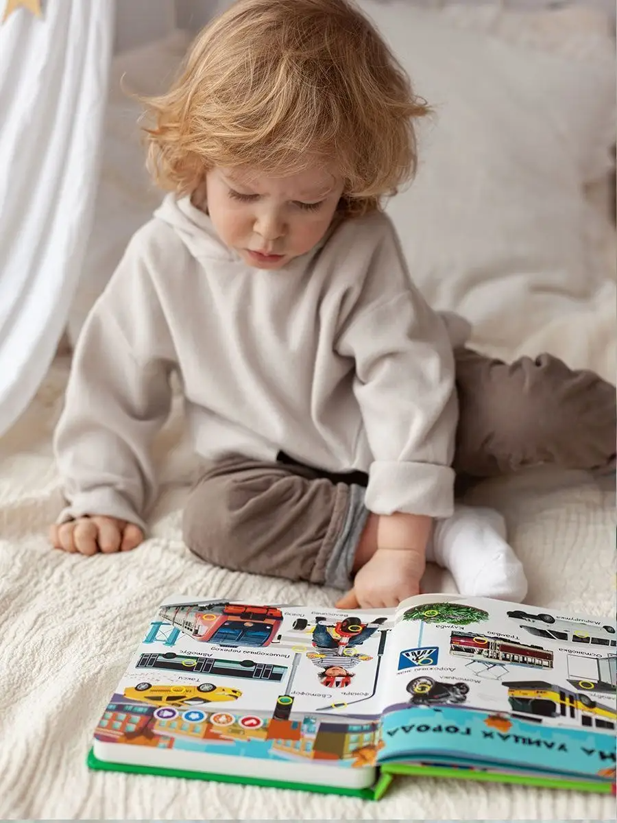 «Я и мир вокруг» - это более 500 различных фраз и заданий по выбранной теме. Вся информация представлена в форме веселой игры, которая развивает воображение, память и способствует развитию речи. Книжка имеет 3 режима на каждом развороте: режим прослушивания названий предметов, режим интересных фактов об изображенных предметах, а также режим "найди и покажи". Дополнительно, книжка оснащена регулировкой громкости, чтобы подстроить звуковой фон под предпочтения вашего ребенка.