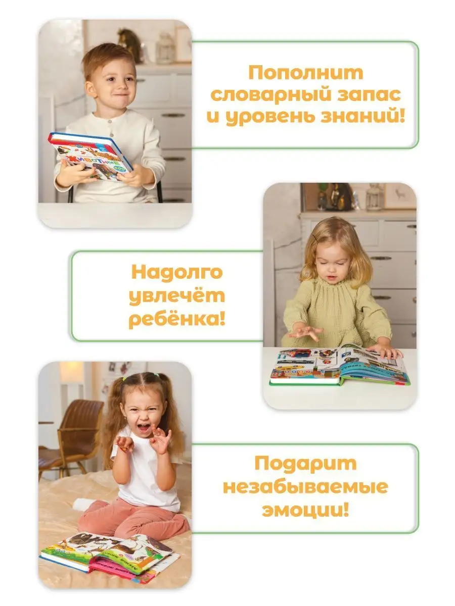 Одно касание пальчика - и картинки на страницах оживают! Книжка имеет двусторонние интерактивные страницы, и на каждой из них представлены яркие и красочные фотографии, которые привлекут внимание ребенка и вызовут его интерес к учебе. Кроме того, реалистичные звуки, воспроизводимые книжкой, помогут малышу запомнить информацию и познакомиться с новыми знаниями.