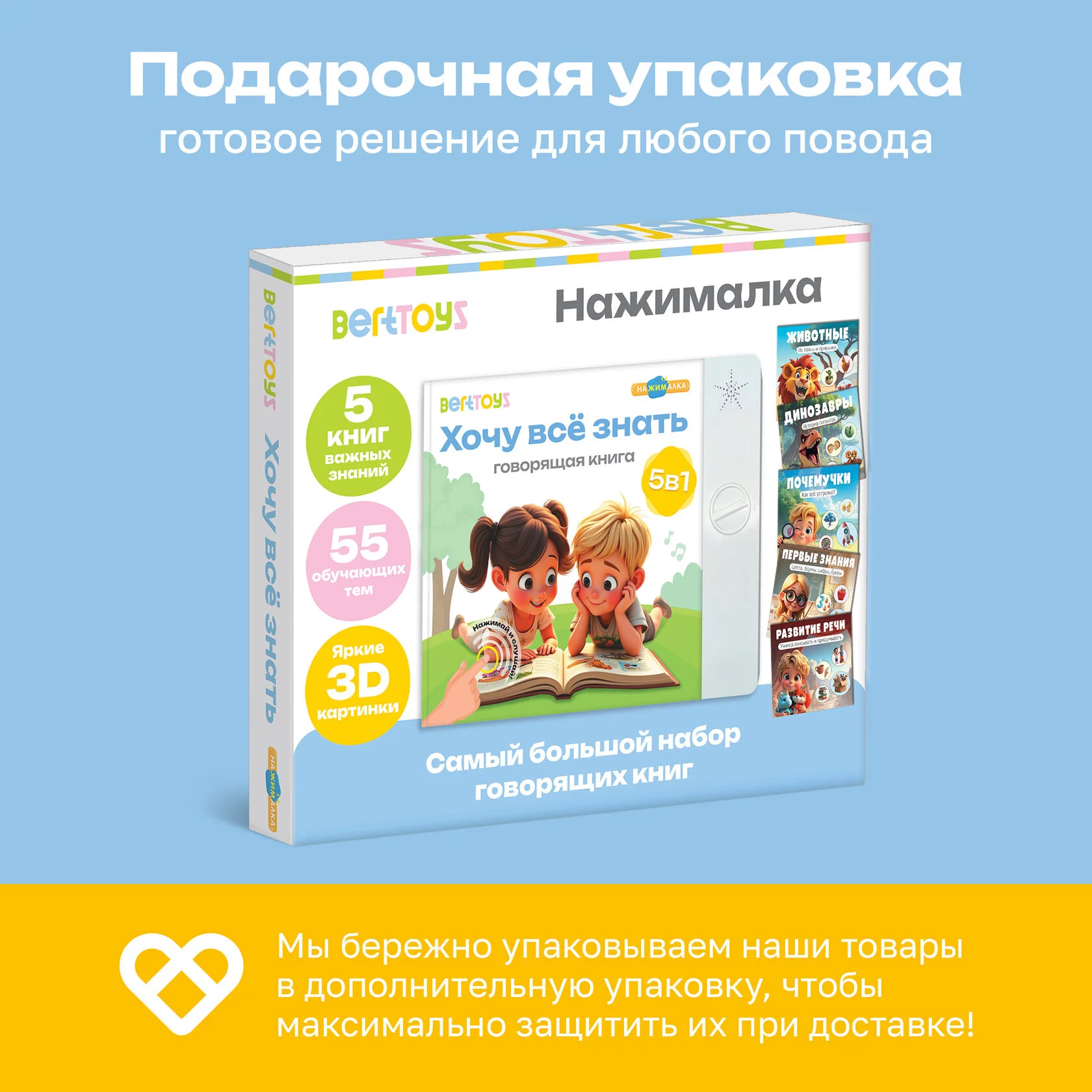 Говорящая интерактивная книжка - Нажималка 5 в 1 Хочу всё знать, BertToys FD155
