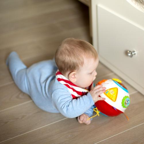 Особенности:- мяч самостоятельно вращается, стимулируя ребенка ползать за ним;