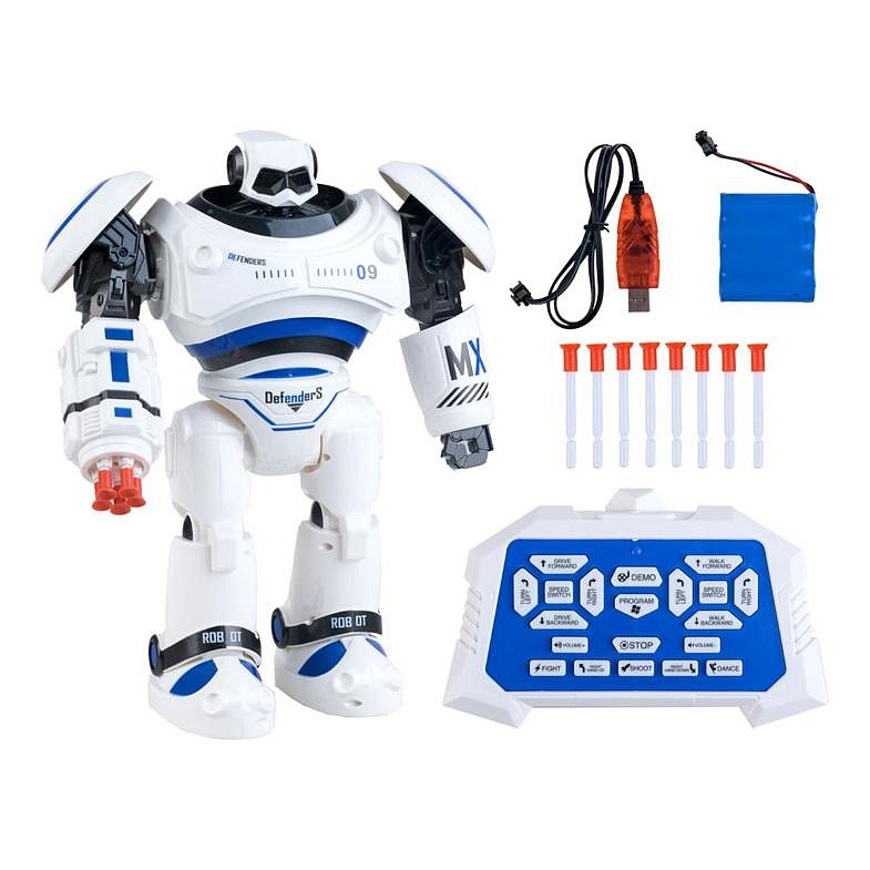 робот, пульт, аккумулятор, 8 пулек, USB-кабель. |