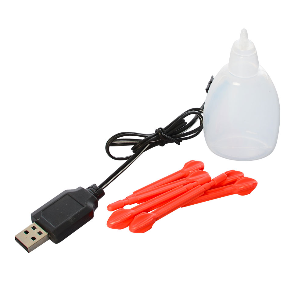 Робот, Пульт, Аккумулятор, Зарядное устройство, Колба для воды, Ракеты, Инструкция. |
