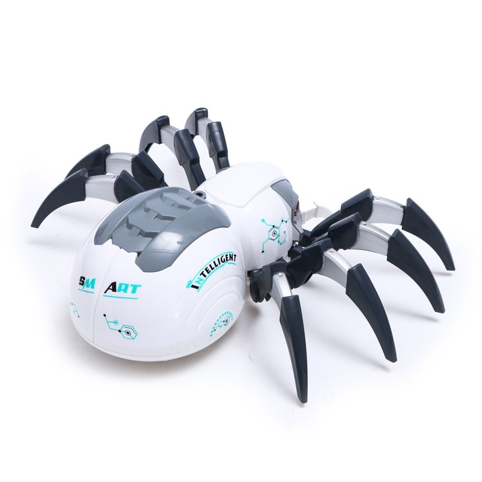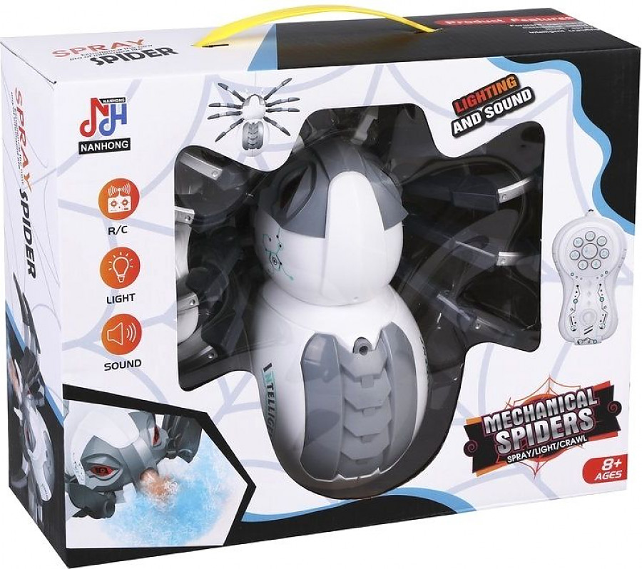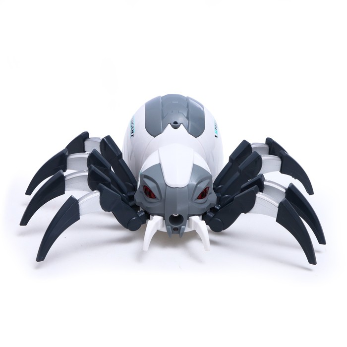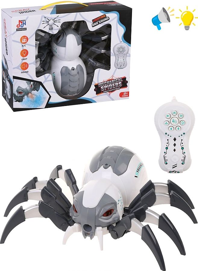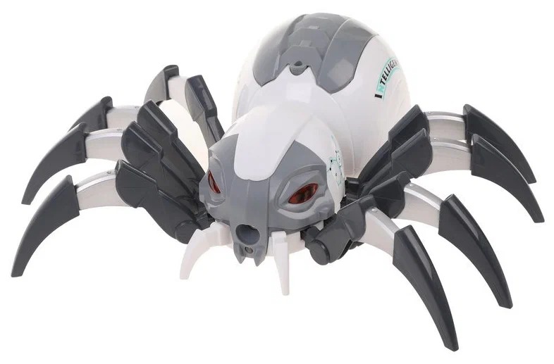 Игрушечный робот-паук на радиоуправлении. Функции: движение вперёд и назад, произвольное движение в разные стороны, выпускание пара с подсветкой, воспроизведение звуков и музыки. Команды задаются нажатием кнопок пульта. Во время игры глаза паука светятся мерцающим светом.