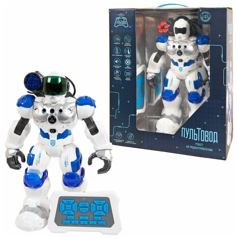Особенностями игрушки Police Bot является удобный пульт управления, оборудованный большим количеством кнопок, что позволяет легко и точно управлять действиями робота. Также, в комплекте есть аккумулятор и зарядное устройство, обеспечивающие долгие часы непрерывного игрового процесса.