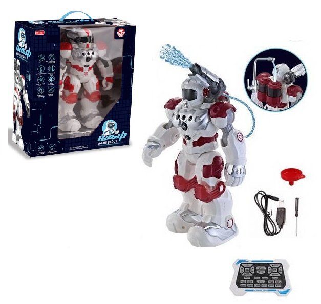 Особенностью робота "Альфа" на дистанционном управлении является его умение стрелять водой и два скоростных режима.