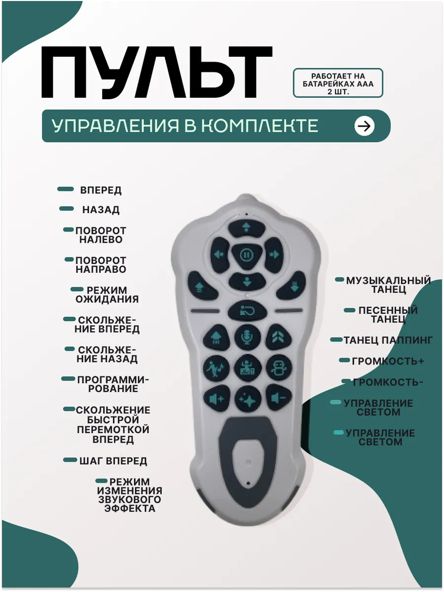 Робот на пульте управления обладает множеством интерактивных функций. Он может двигаться в различных направлениях и даже танцевать! Управление осуществляется с помощью пульта дистанционного управления, который очень прост в использовании. Особенностью этой игрушки является распознавание жестов, что делает взаимодействие с роботом ещё более интересным и естественным. Представьте, как весело вашему ребенку будет заставлять робота на радиоуправлении выполнять различные действия только с помощью жестов!