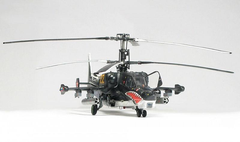 Вертолет Ка-50 является уникальным средством борьбы как с наземными, так и с воздушными целями. Это мощная, хорошо бронированная машина, управляемая одним человеком. Применение сосной схемы расположения винтов дает вертолету отличную маневренность, позволяя ему перемещаться боком, лететь назад, практически мгновенно менять направление движения.