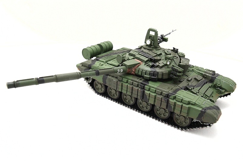 Историческая справка: Этот танк модификации 1985 года отличается от предшественников наличием комплекса управляемого ракетного вооружения и усиленной броневой защитой башни. Кроме этого, на танк ставится навесная динамическая защита, состоящая из 227 контейнеров, почти половина из которых размещается на башне.Набор деталей из пластмассы для сборки одной модели танка.