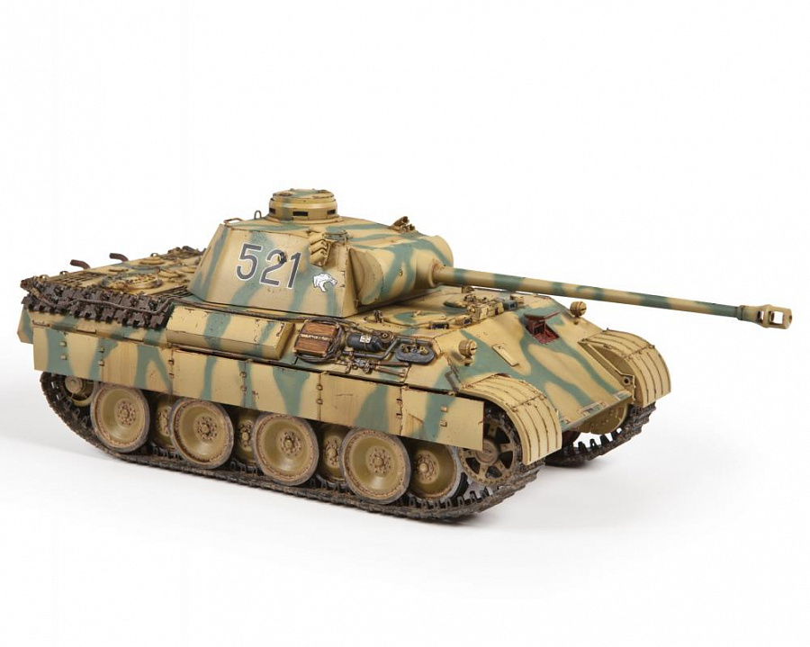 Историческая справка: Эта боевая машина была разработана немецкой фирмой MAN в 1941-42 годах в качестве основного танка вермахта. Боевым дебютом «Пантер» стала битва на Курской дуге. «Пантера» считается лучшим немецким танком Второй Мировой войны. Противостоять снарядам «Пантеры» могла лишь броня советских тяжёлых танков ИС-2.
