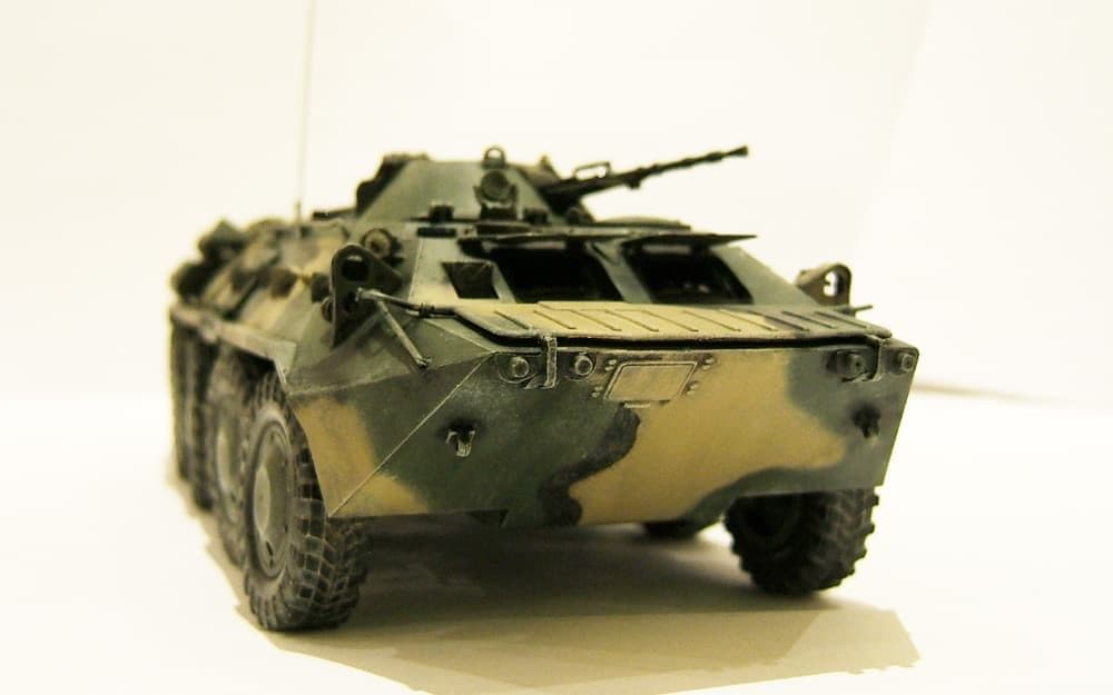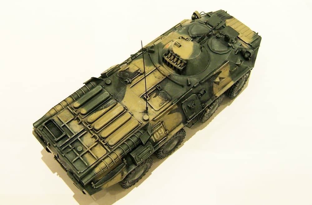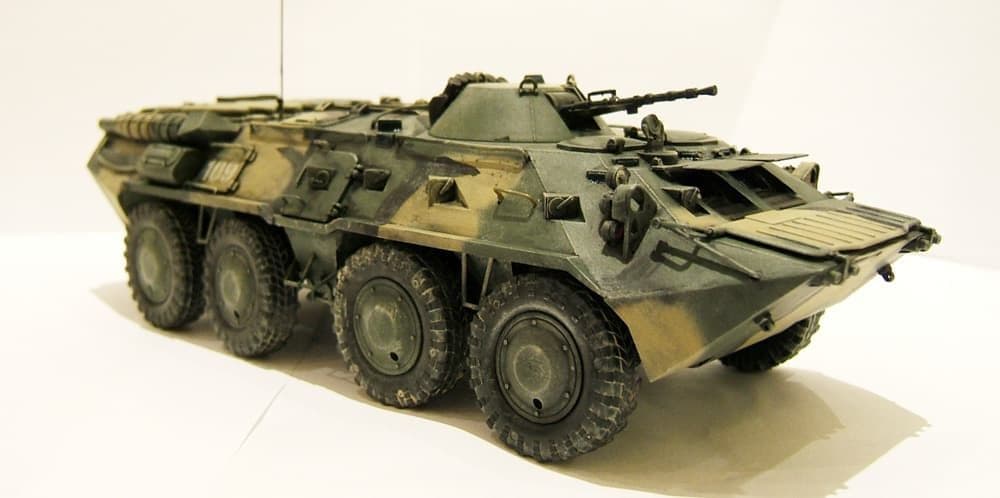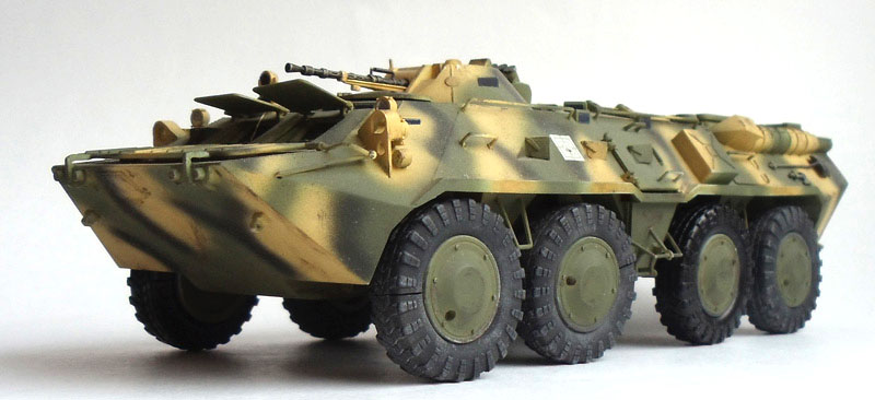 Полноприводный 8-колесный бронетранспортер БТР-80 был принят на вооружение в начале 80-x годов. Кроме экипажа из 3-х человек может перевозить до 8 пехотинцев. Вооружен двумя пулеметами, один из которых крупнокалиберный 14,5-мм КПВТ.