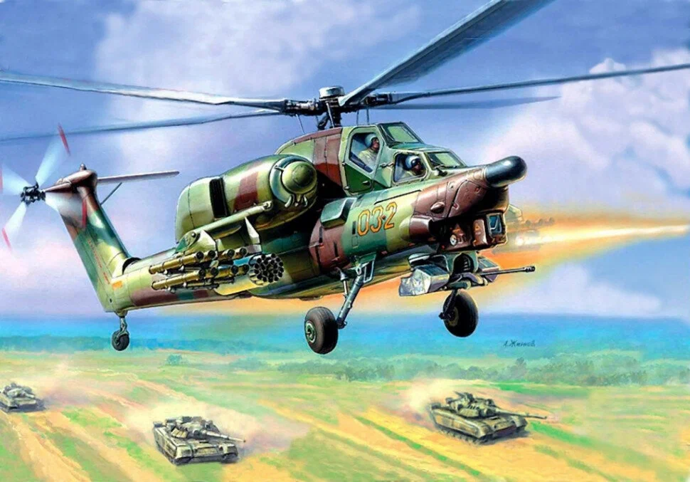 Исторический контекст: Ми-28 - современный российский боевой вертолет, который впечатляет своим мощным вооружением. Он оборудован противотанковыми управляемыми ракетами, неуправляемыми ракетами и автоматической 30-мм пушкой. Вертолет также оснащен современной бортовой радиоэлектронной аппаратурой, что позволяет успешно выполнять различные задачи. Он был разработан и впервые полетел в 1982 году, и с тех пор является аналогом американского вертолета "Апач".