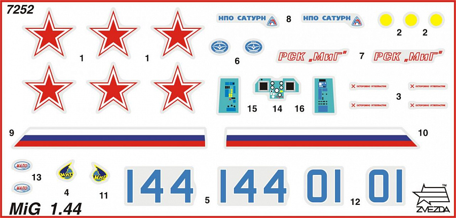 Российский многофункциональный истребитель нового поколения МиГ 1.44 МФИ - модель сборная, Звезда 7252з