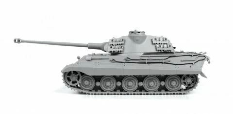 Историческая справка: "Королевский тигр" был самым тяжёлым серийным танком Второй мировой войны. Своим мощнейшим 88-мм длинноствольным орудием он был способен уничтожать танк "Шерман" с расстояния 3500 метров.