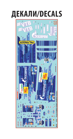 Декаль для оформления: В комплекте есть декаль (наклейки), с помощью которых вы сможете нанести на модель фирменную ливрею команды «КАМАЗ-мастер». Модель воспроизводит уникальный дизайн, которым автомобиль был украшен в честь 30-летия команды — строгие геометричные формы, подчёркивающие технологичность и инновационный подход спортивной линейки КАМАЗ .