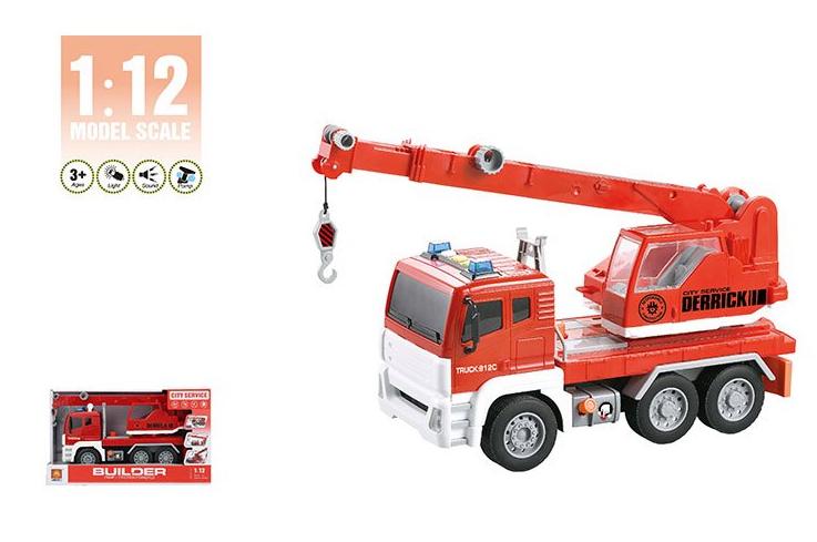 Пожарная машина - Автокран, инерционный, игрушка, 1:12 WENYI, WY812C