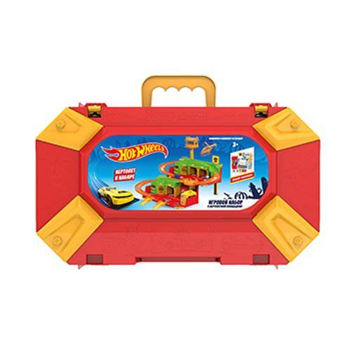 Игровой набор "Хот Вилс" от компании "Нордпласт" представлен в виде яркой парковки, оснащенной вертолетной площадкой.
