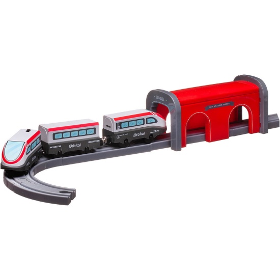 Все вагоны, рельсы и дополнительные аксессуары изготовлены из пластика.