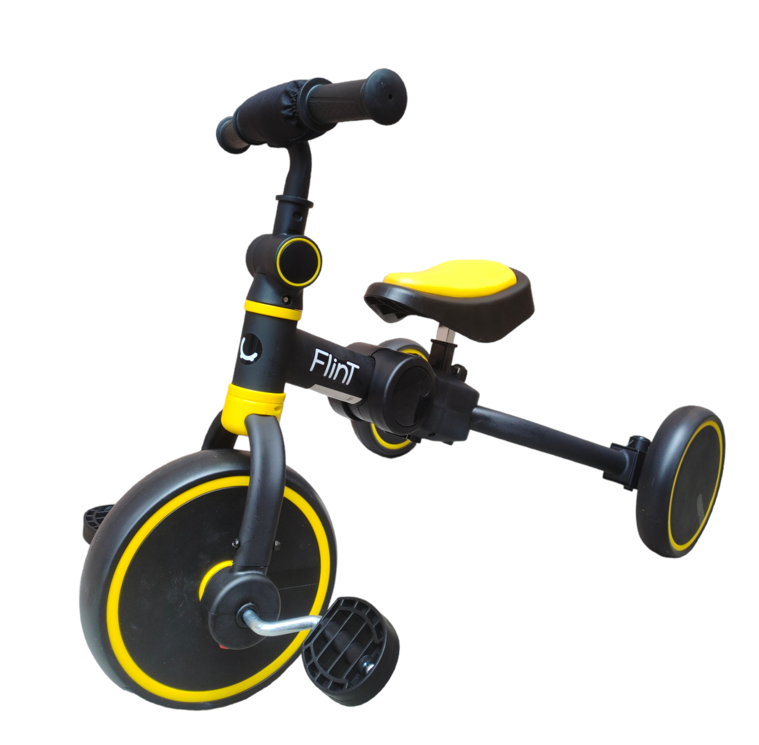 - Трансформер 4 в 1: двухколесный, трехколесный беговел и двухколесный или трёхколесный велосипед;