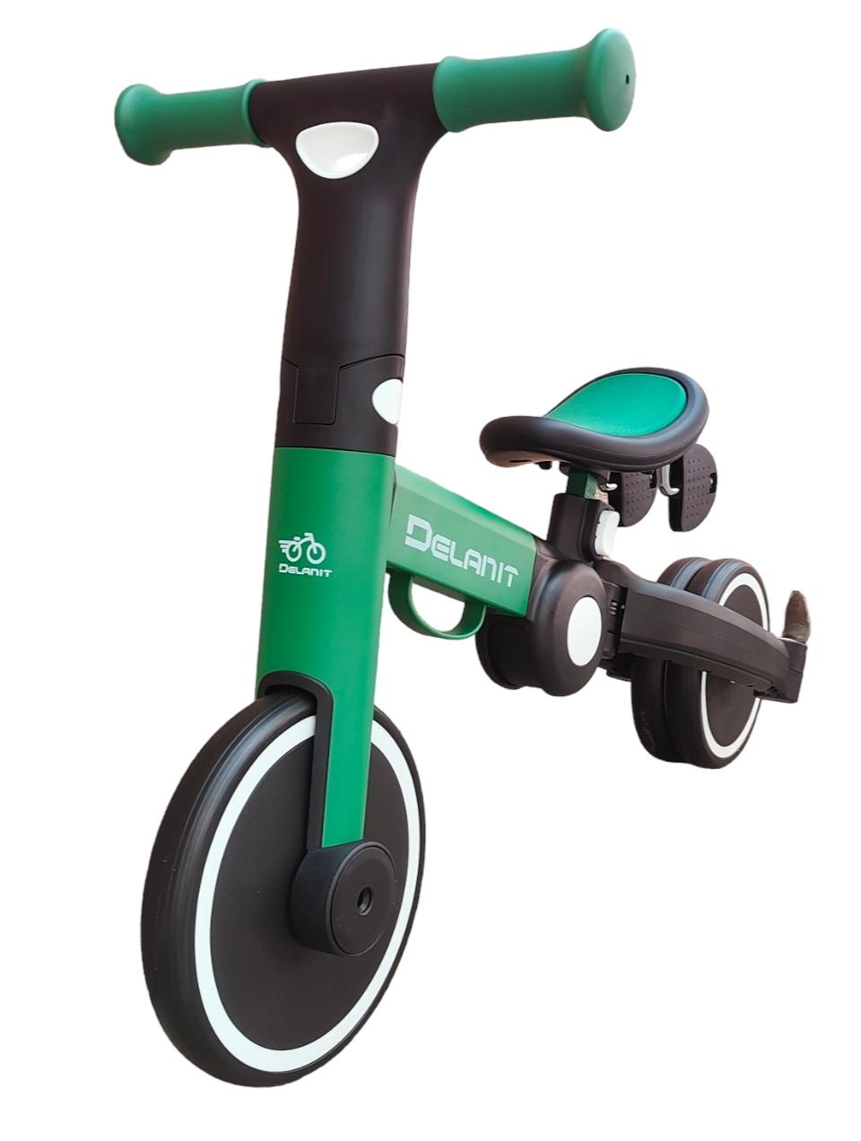 Беговел детский велосипед 3 в 1 трансформер с педалями, Delanit T-801Green