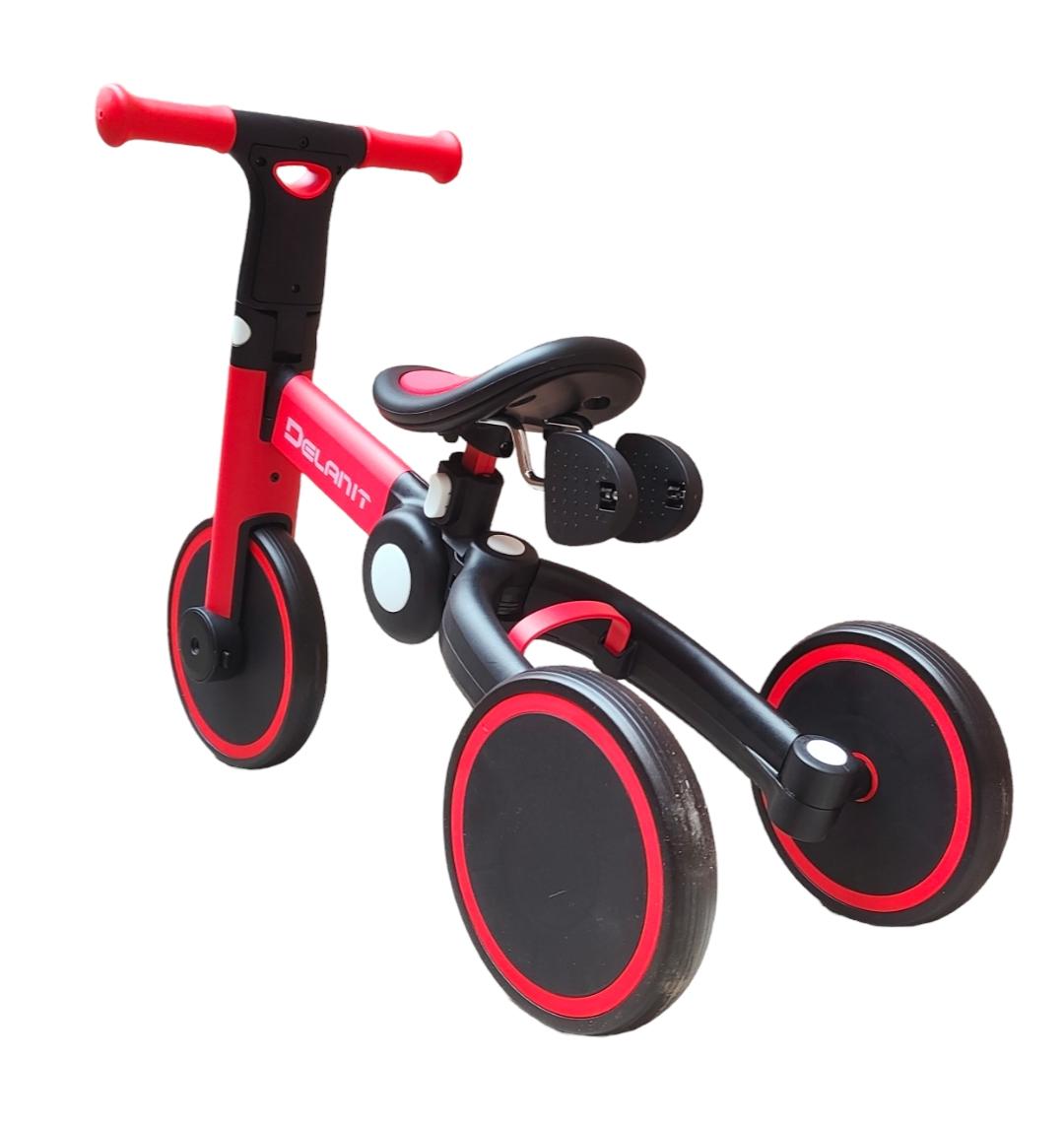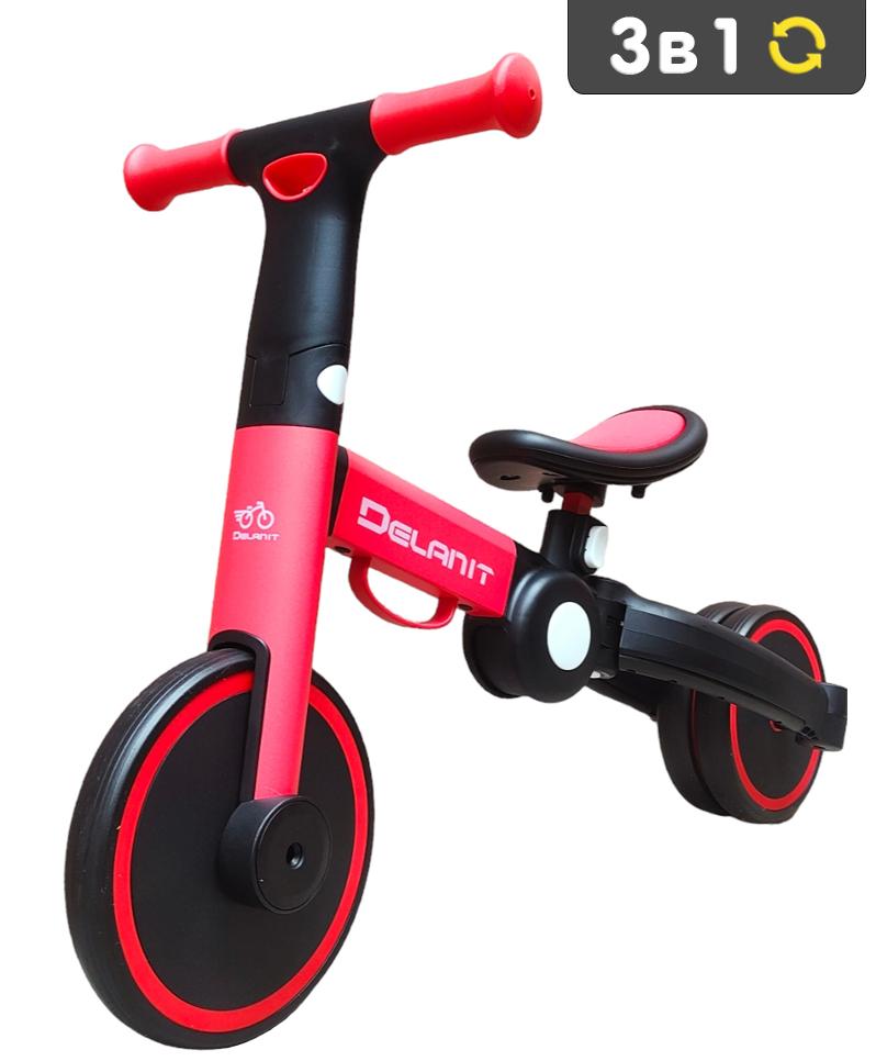 Беговел-велосипед с родительской ручкой 3 в 1 трансформер, Delanit T-801redRR