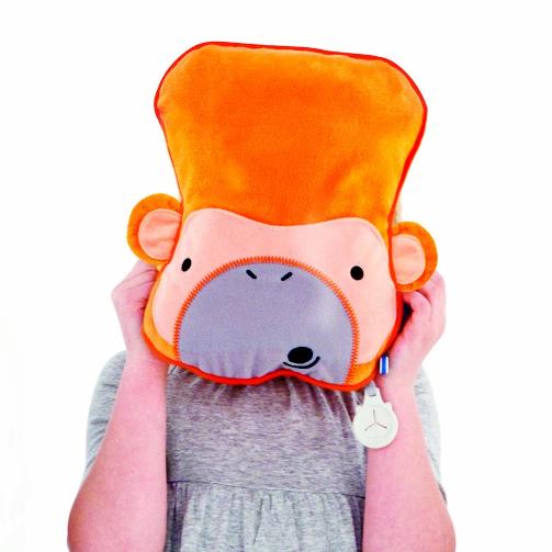 Подушка выполнена в виде забавной рожицы обезьянки. На пледе есть специальный кармашек, куда можно посадить свою любимую игрушку, чтобы она тоже поспала.