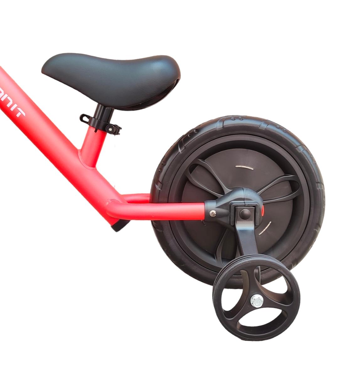 Эта модель включает дополнительные страховочные колеса, которые легко отстегиваются и превращают беговел в полноценный 4-колесный велосипед. Трансформация выполняется моментально и без дополнительных ключей и отверток.